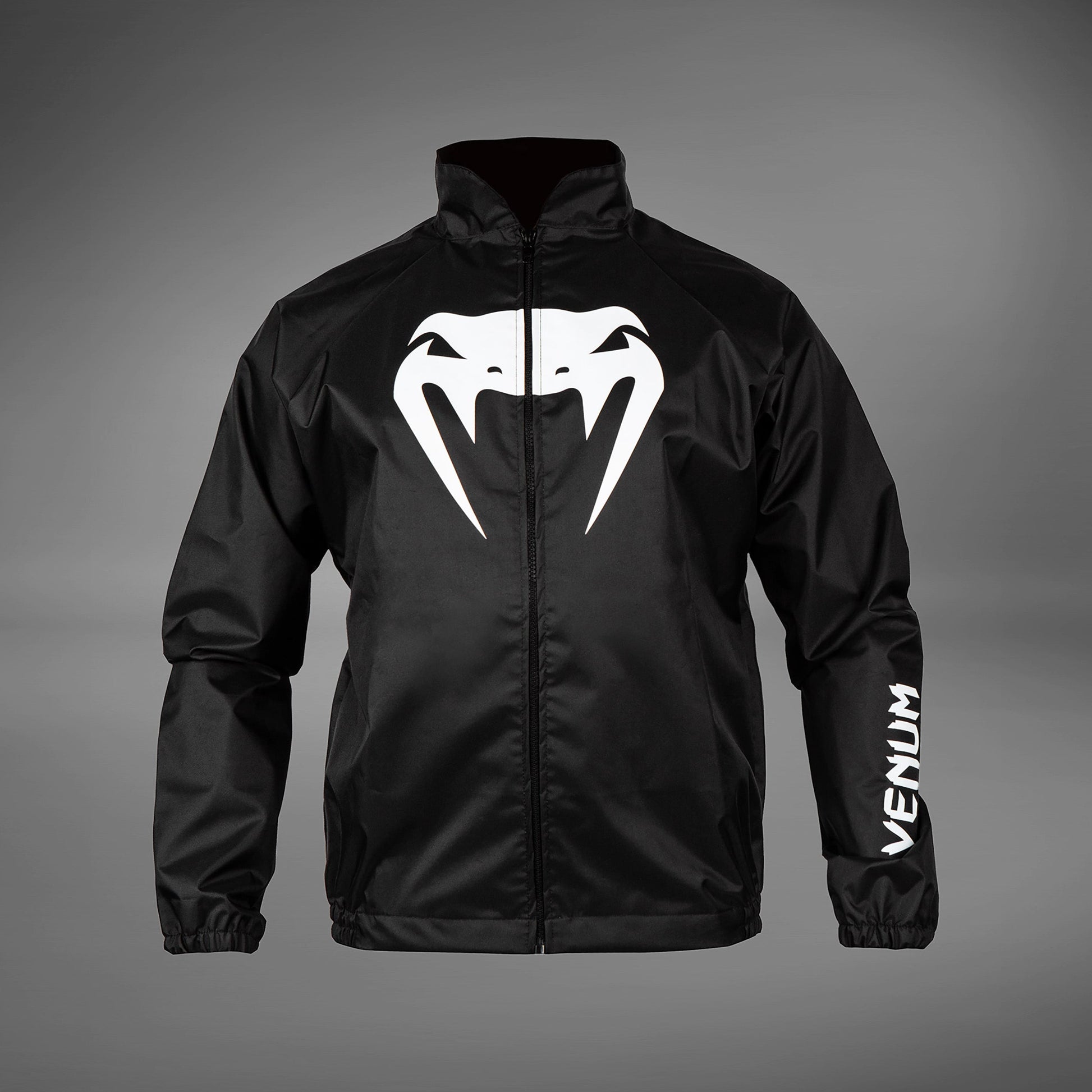 Le design n’est pas en reste avec une imposante tête de serpent sur la face avant de la veste au niveau du torse et l’inscription Venum sur le bras gauche porté. Le pantalon est taggé Venum sur la jambe gauche portée.