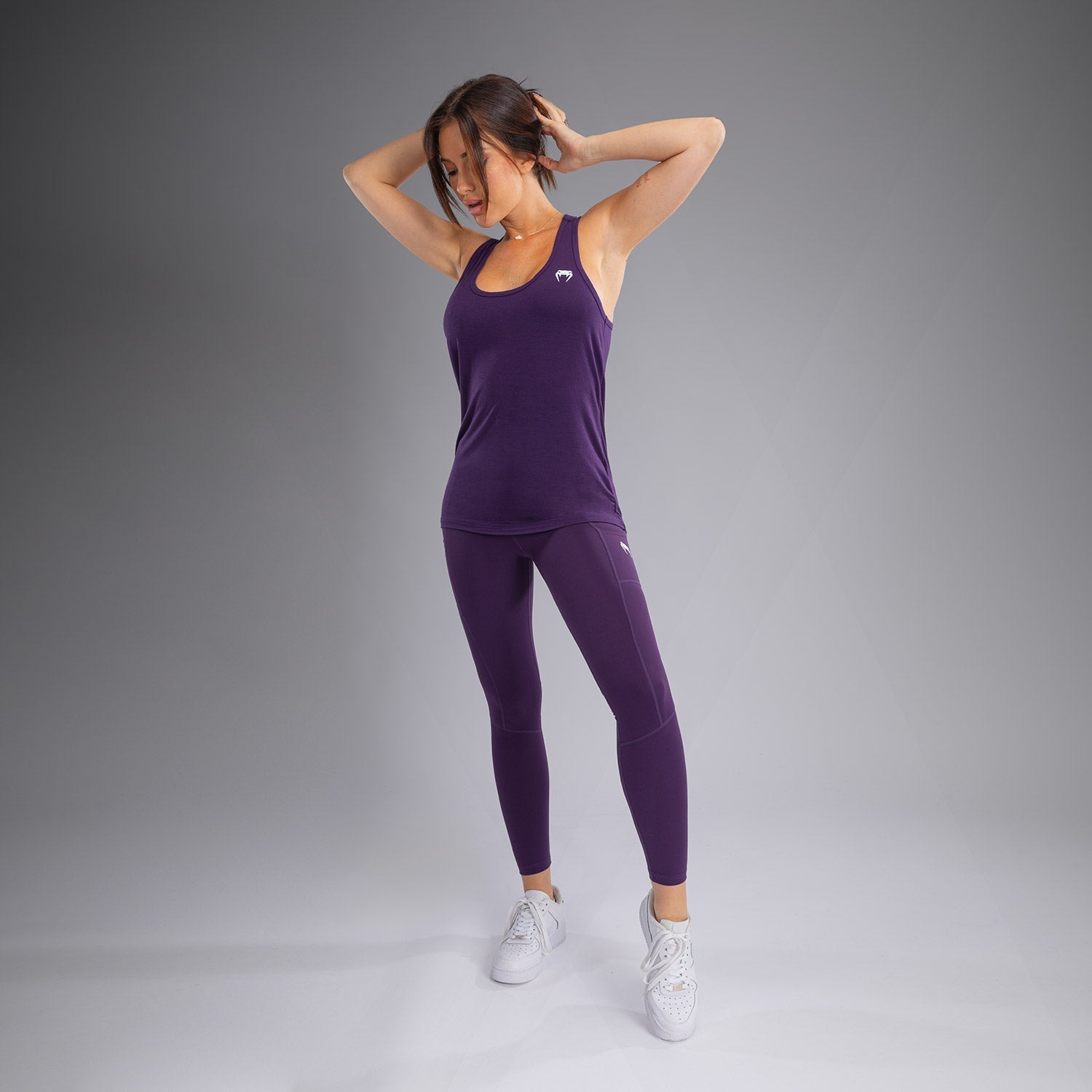 Le débardeur Venum Essential en violet profond présente un tissu exceptionnellement doux qui tombe facilement sur un soutien-gorge de sport.La coupe dos nageur du débardeur offre une liberté de mouvement.