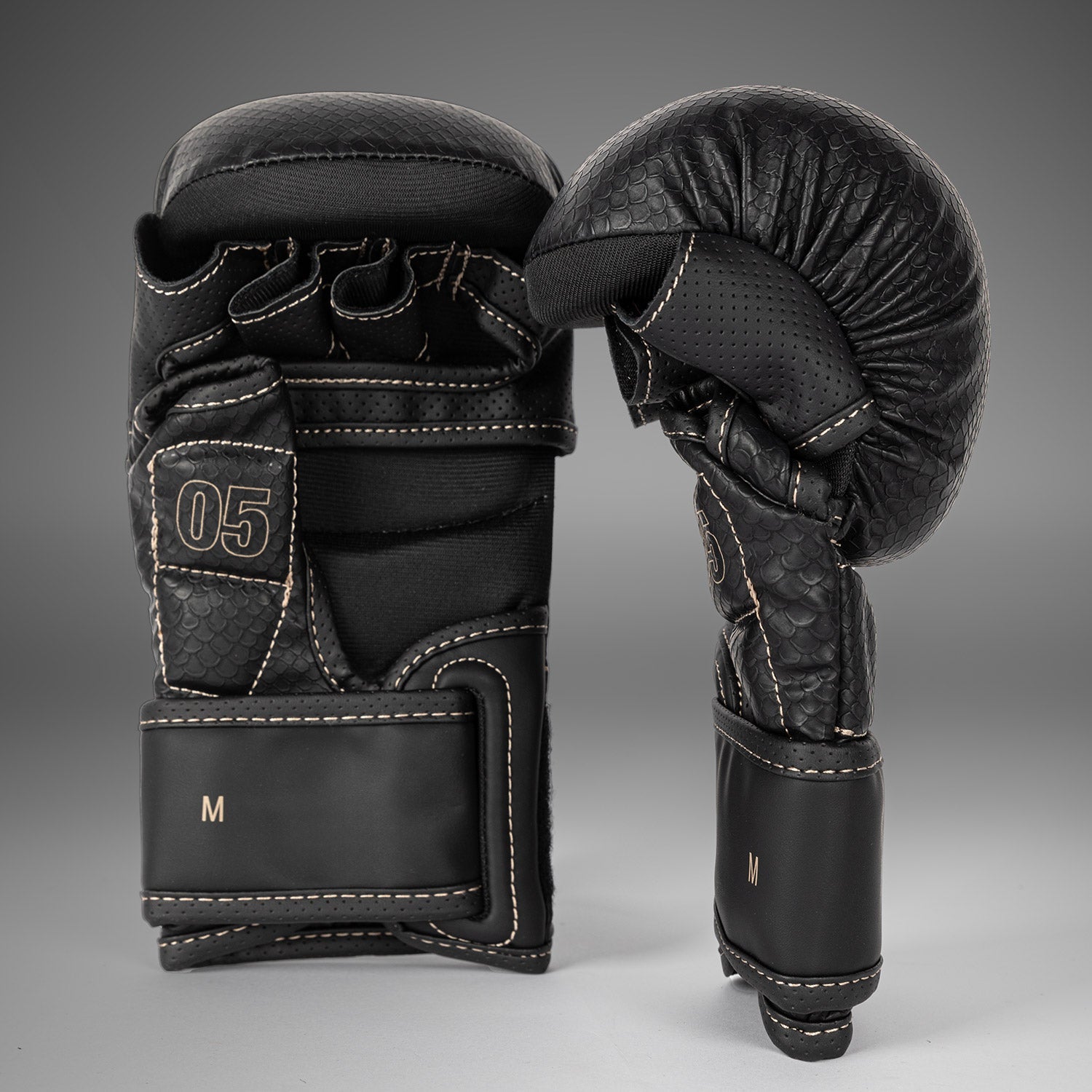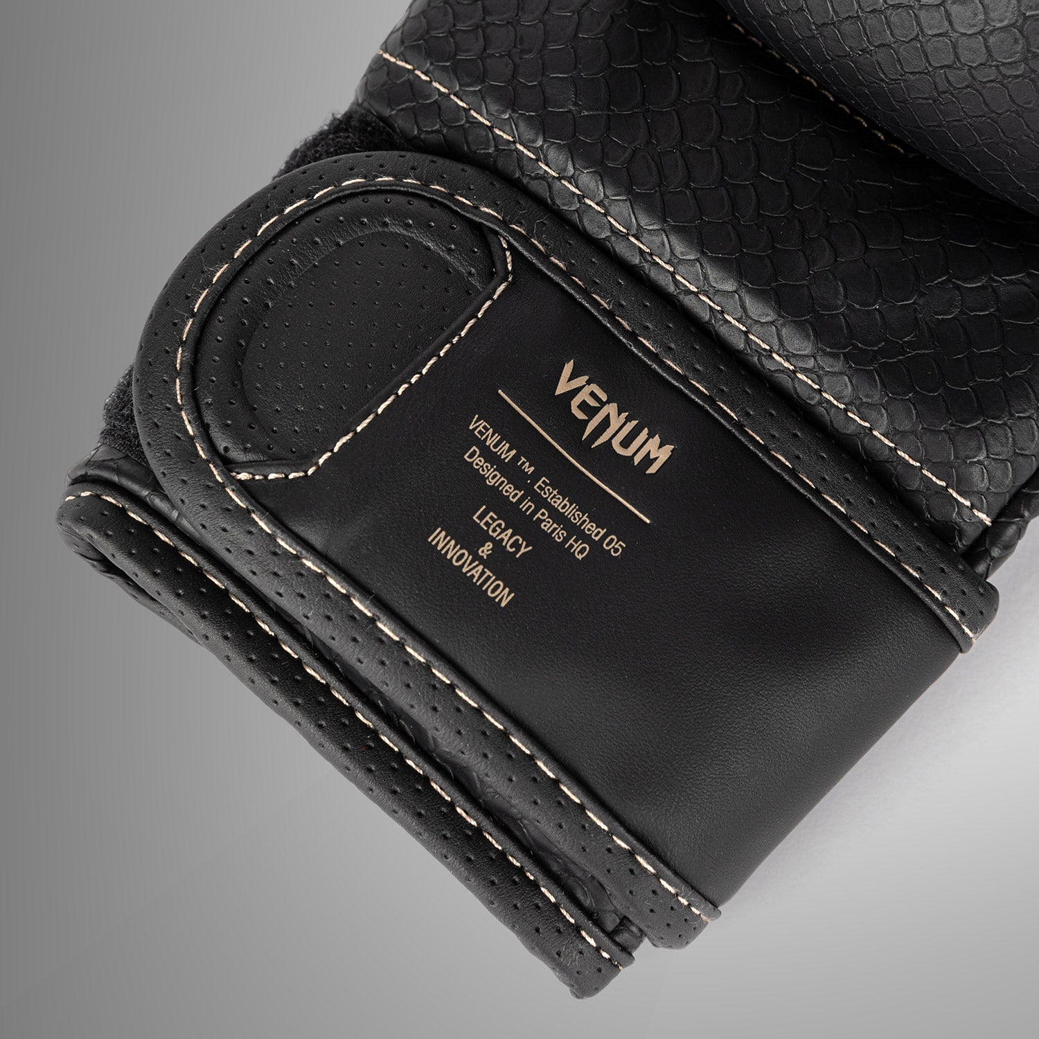 Des coutures beiges soulignent la construction anatomique du gant pour un contraste subtil, tandis que des écailles texturées recouvrent la surface, rappelant l’esprit combatif : frappez fort et vite avec Venum.
