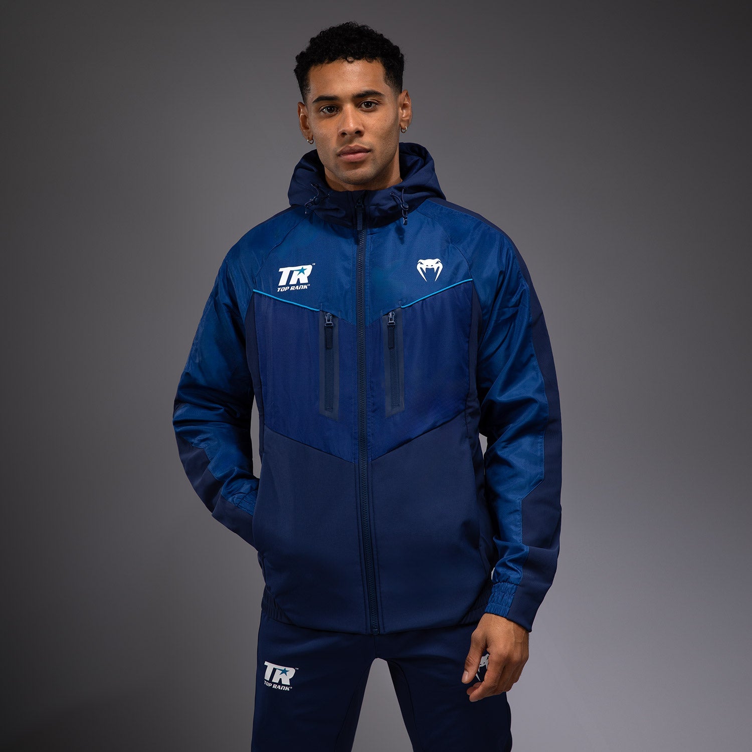 Hoodie Zippé Intégral Venum x Top Rank Original pour Hommes - Bleu Marine