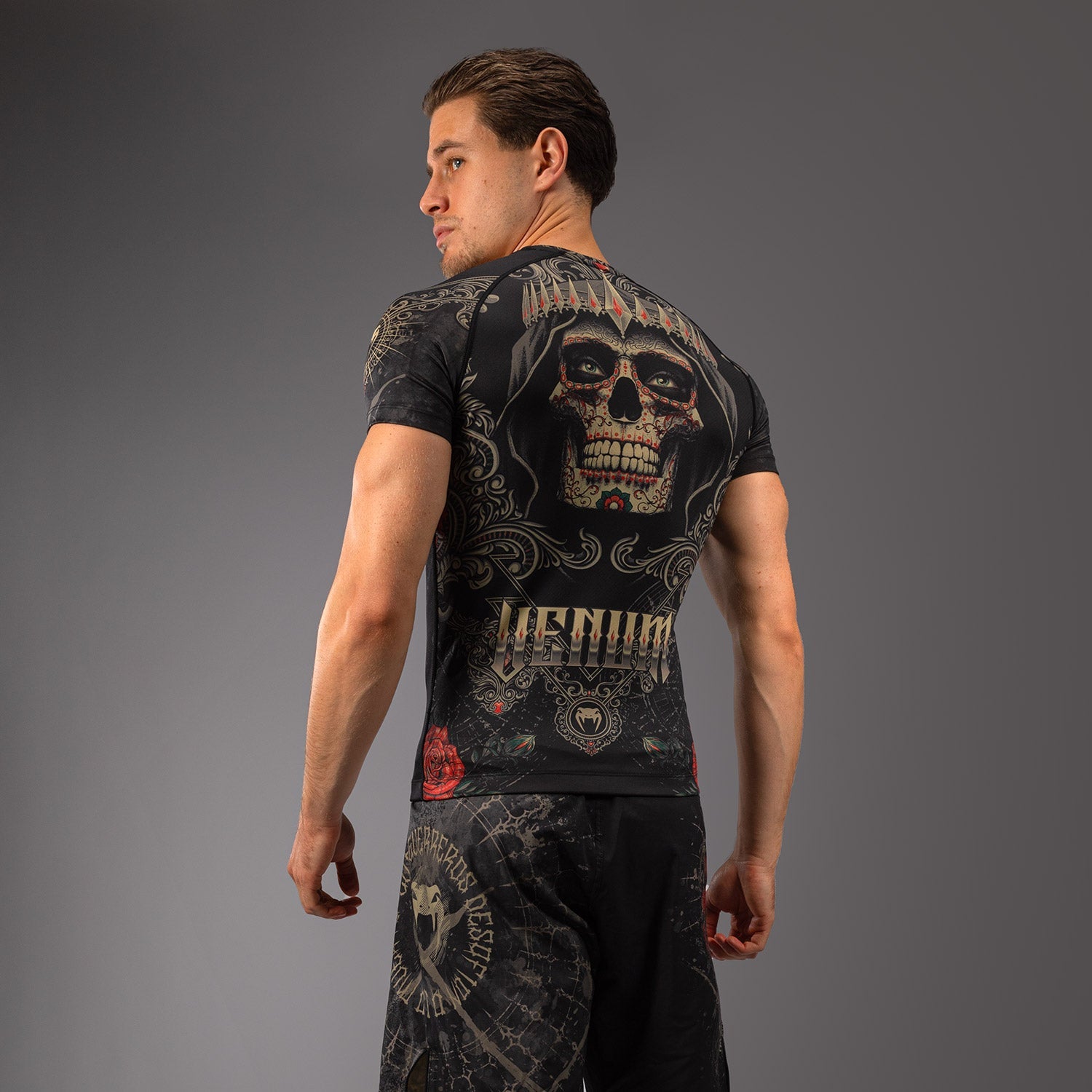 Rashguard à Manches Courtes pour Hommes Venum Santa Muerte 5.0 - Noir Profond/Or