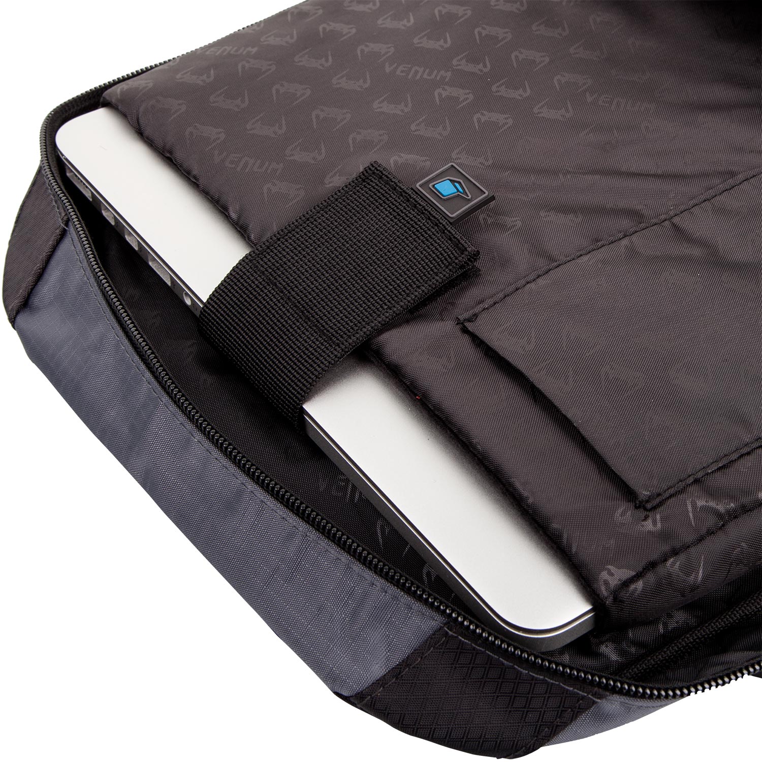 Le compartiment principal peut accueillir un ordinateur de 17" qui sera maintenu par un Velcro spécifique.