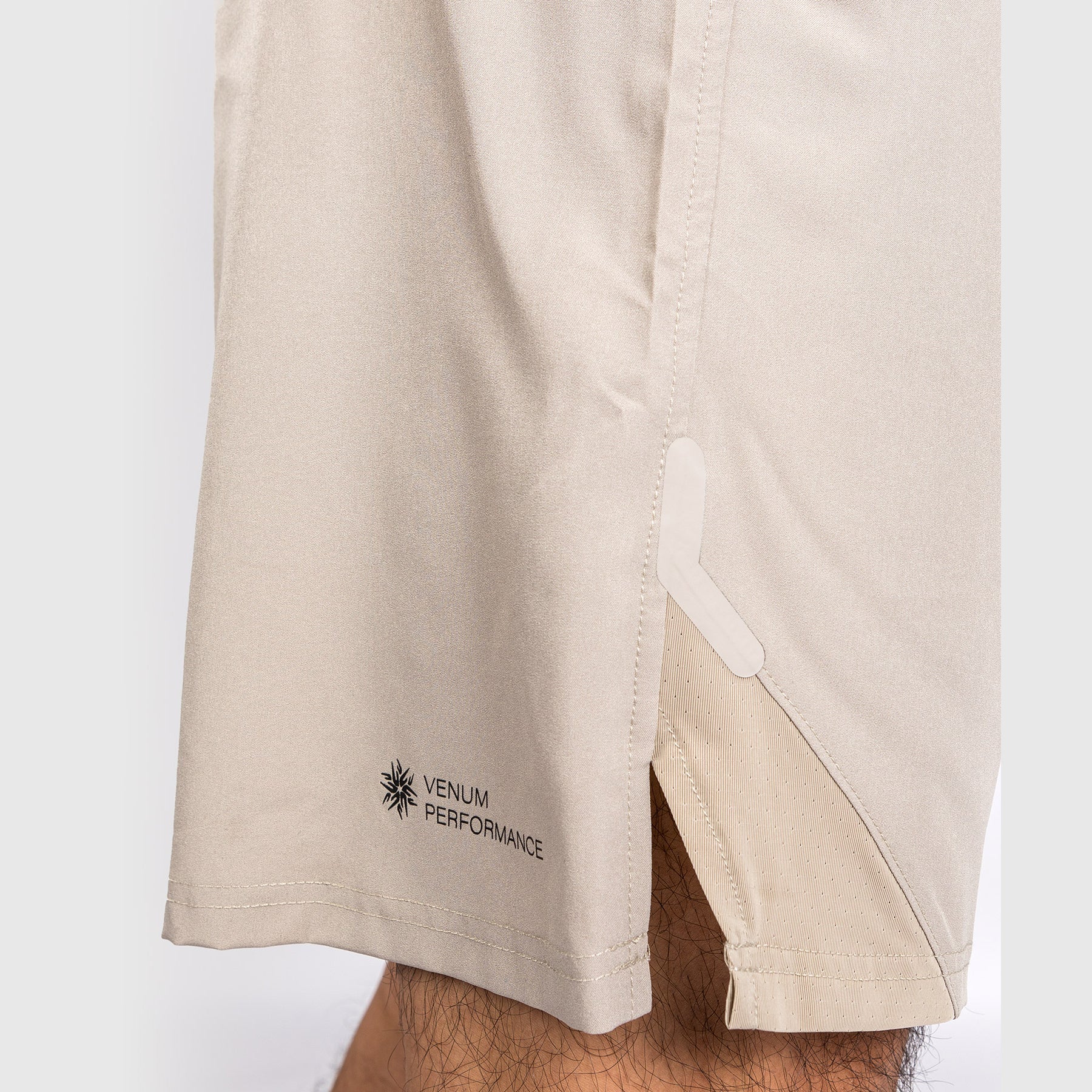 Le short d'entraînement Venum G-Fit Air en sable offre un style subtil et contemporain qui s'associe parfaitement avec le rashguard assorti de la même collection.
