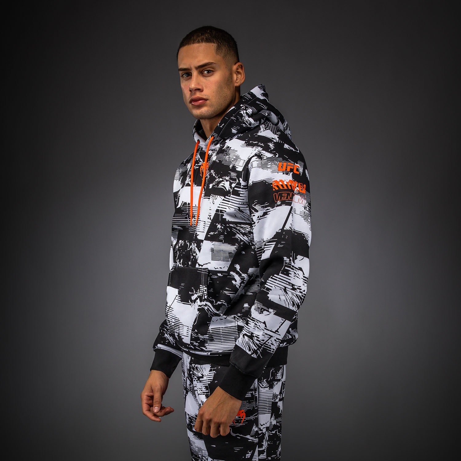 Le sweat à capuche UFC Zenith by Venum Fight Week pour homme arbore un marquage sérigraphié sur la poitrine, le bras gauche et l’arrière de l’épaule droite. Sa poche kangourou et sa capuche avec cordon de serrage viennent parfaire ce sweat premium.