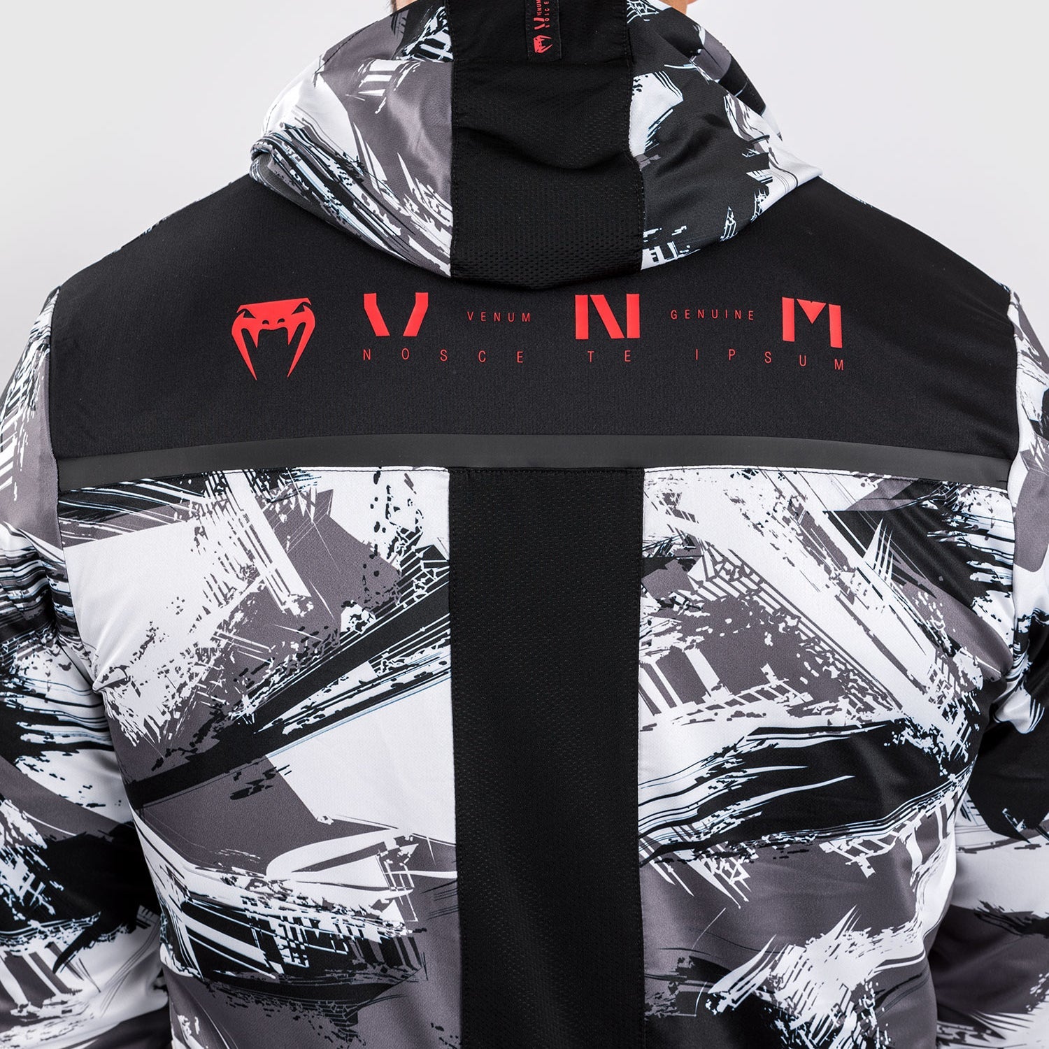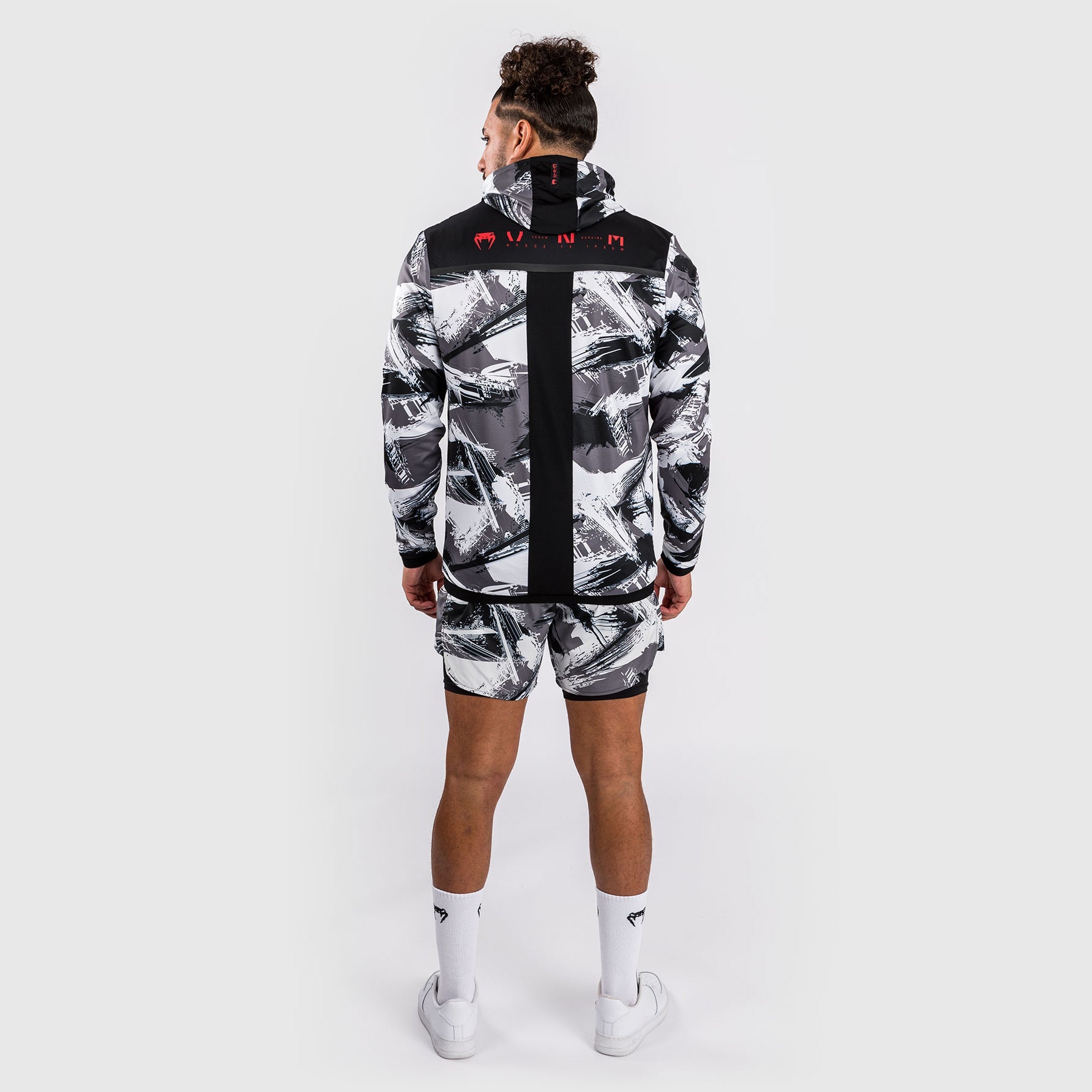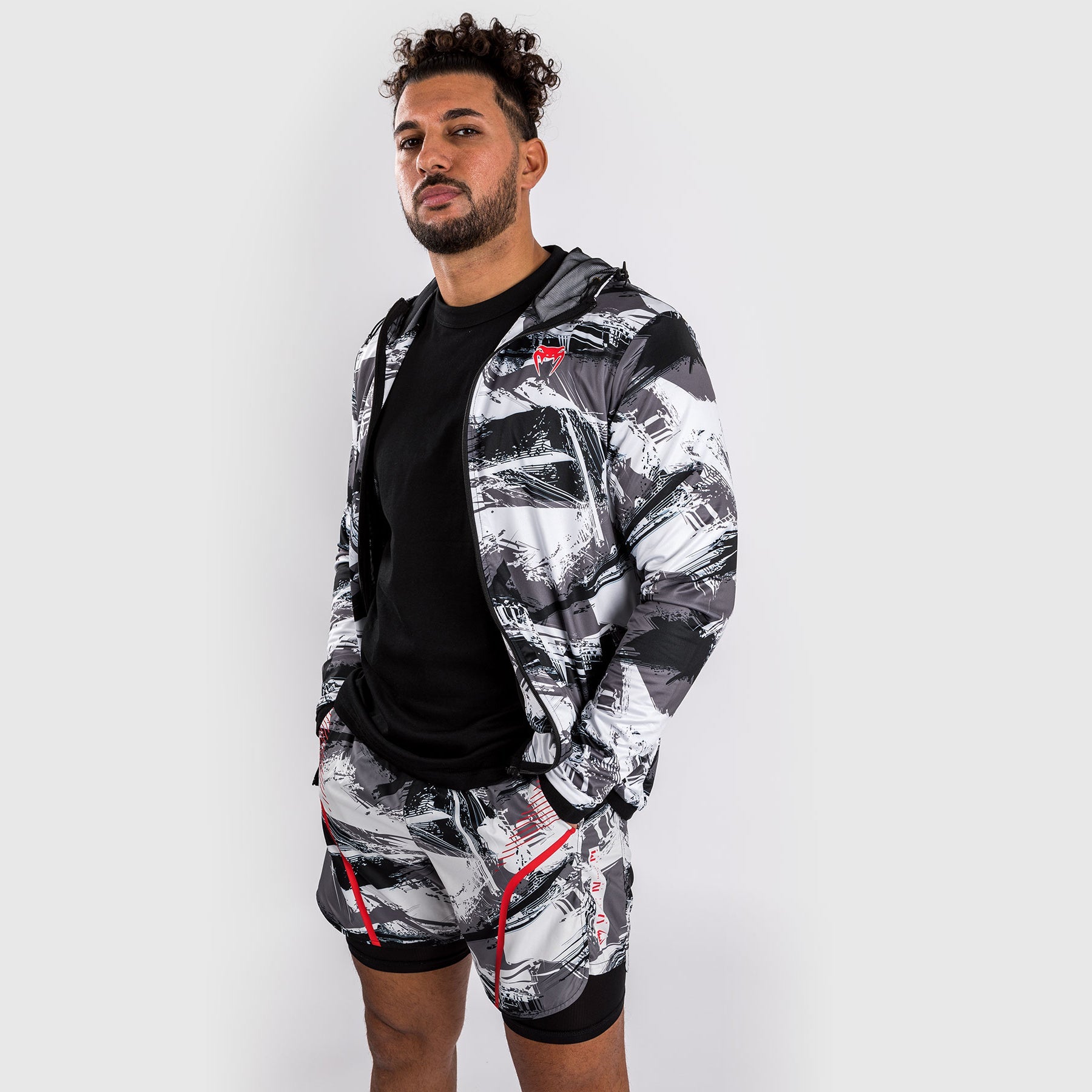 L'imprimé camouflage à coups de pinceau en Gris/Rouge confère un style urbain au short, tandis que le logo Venum est apposé sur la poitrine. La phrase latine "Nosce te ipsum" ("Connais-toi toi-même" - Socrate), accompagnée du logo Venum, figure dans le dos.