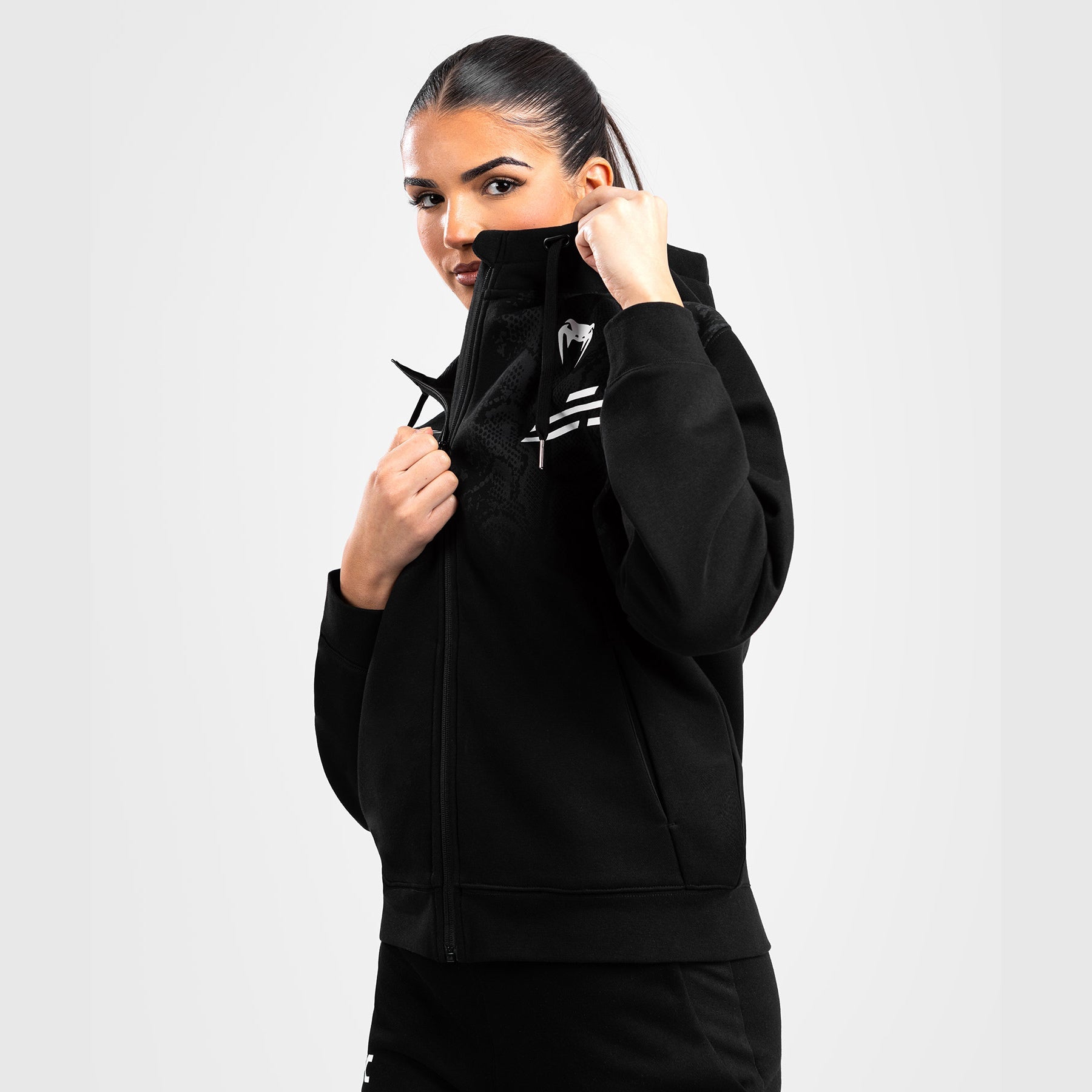 Ce sweat à capuche entièrement zippé pour femme fait partie de la dernière collection à indice d'octane élevé de Venum et de l'UFC.