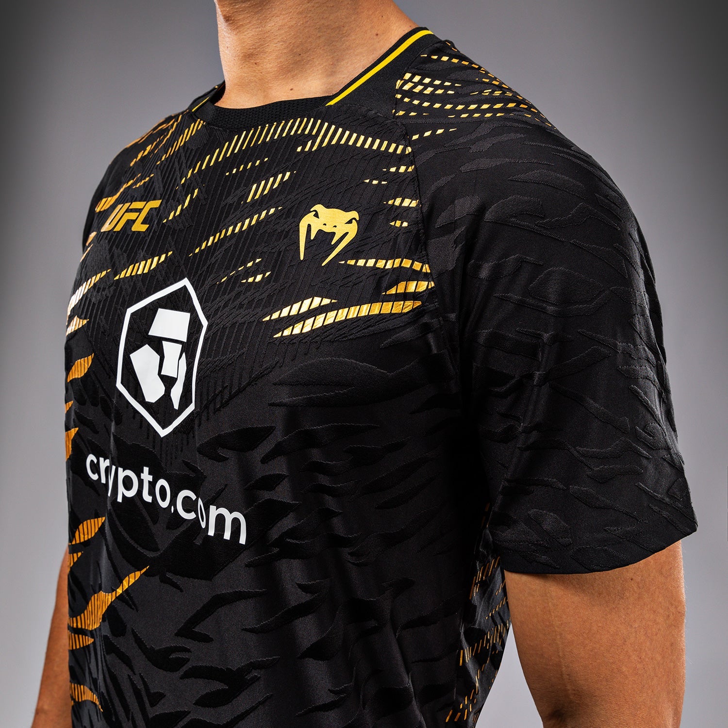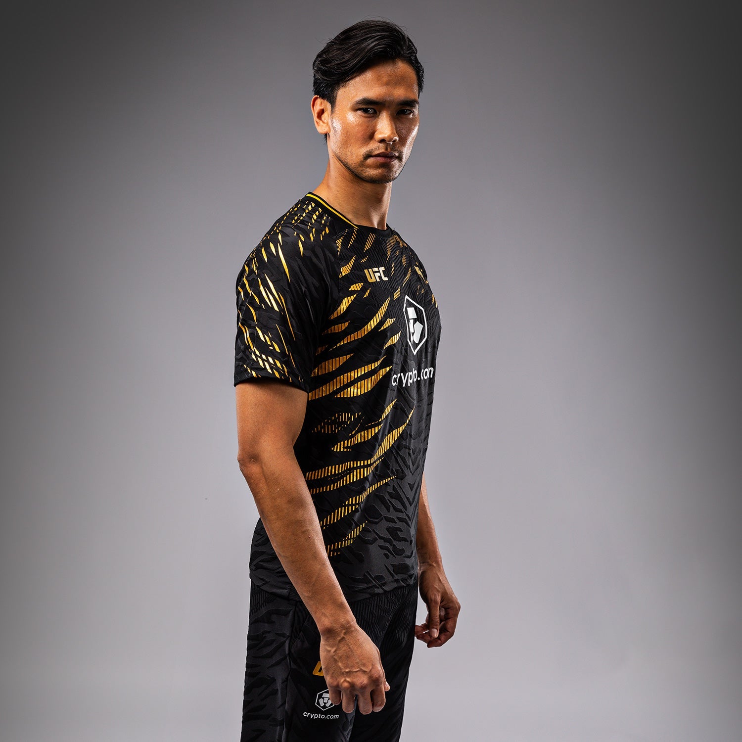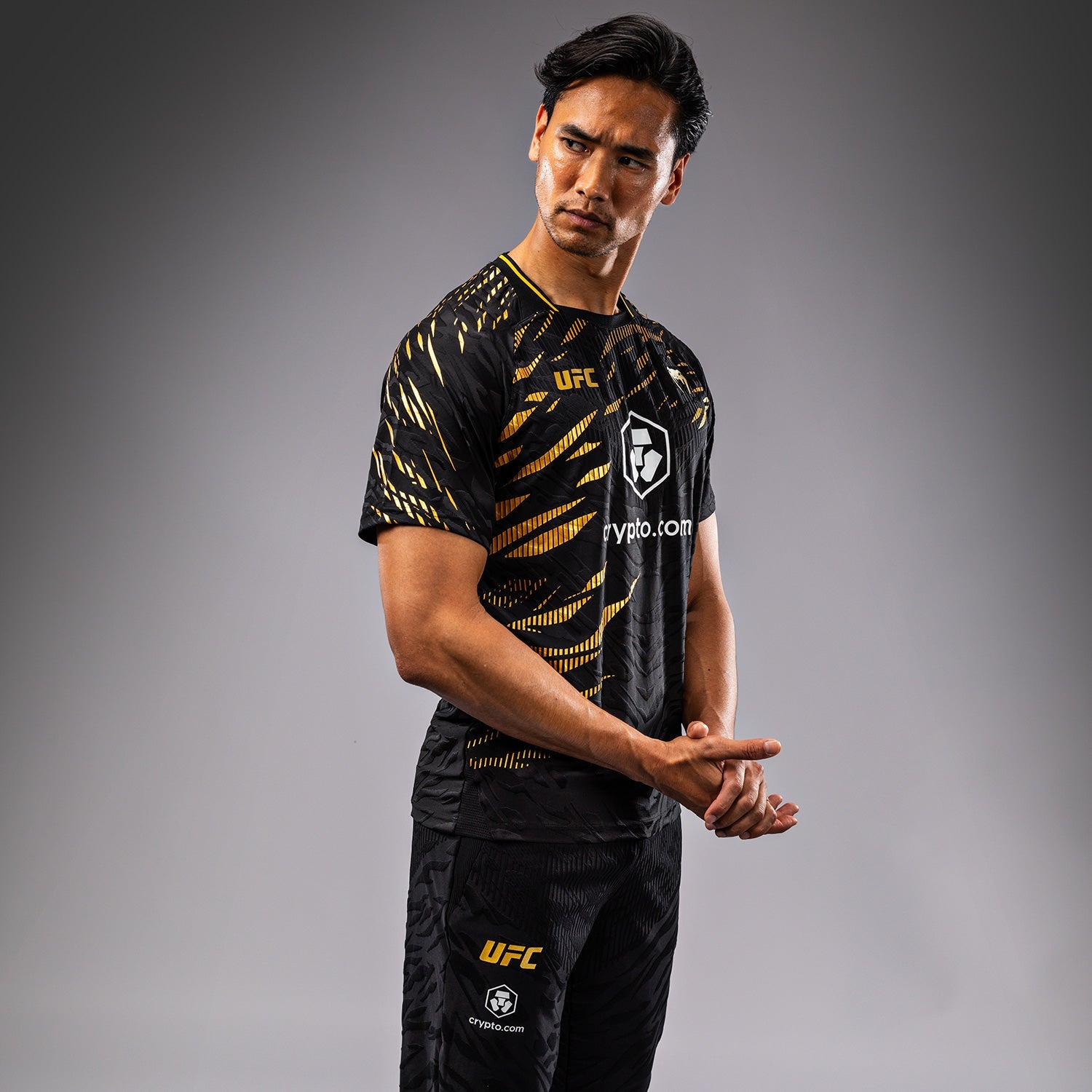 Le maillot de sortie pour hommes UFC Fusion par Venum Authentic Fight Night en Noir/Or est une chemise de performance légère avec suffisamment d'élasticité pour bouger avec vous. Vous resterez à l'aise et au frais grâce au tissu Dry-Tech de la chemise, même pendant les séances d'entraînement les plus intenses. Cette combinaison de couleurs Noir/Or est réservée aux champions UFC.