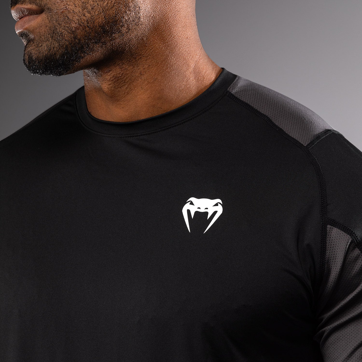 Le graphisme dynamique sublimé de ce coloris noir-gris est rehaussé du logo Venum blanc sur la poitrine.