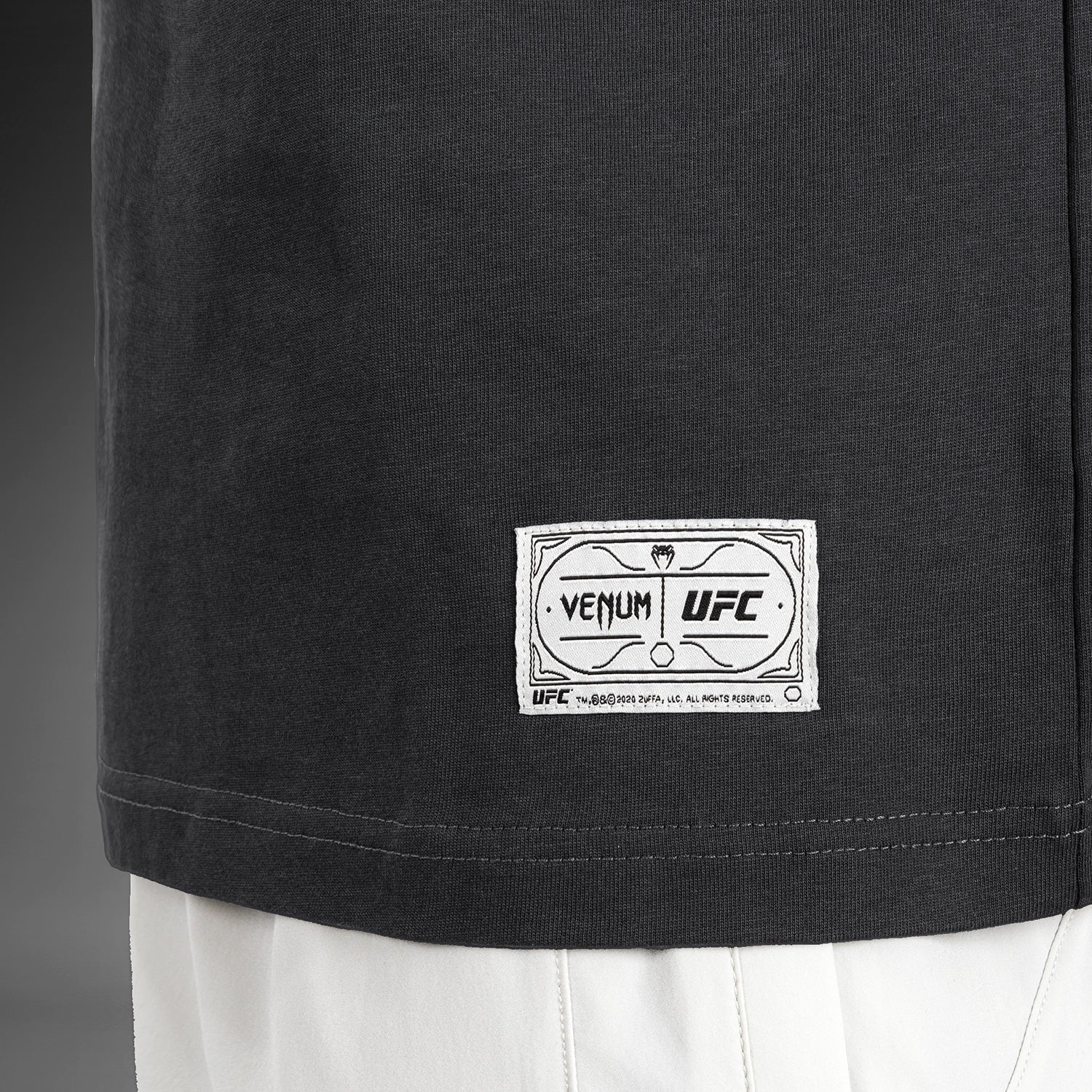 Sur ce T-shirt graphique noir à col ras du cou, le logo emblématique Ulti-Man en gris occupe le devant de la scène, tandis qu'un écusson de marque se trouve sur la hanche. Le logo Venum, également gris, est apposé dans le cou arrière.