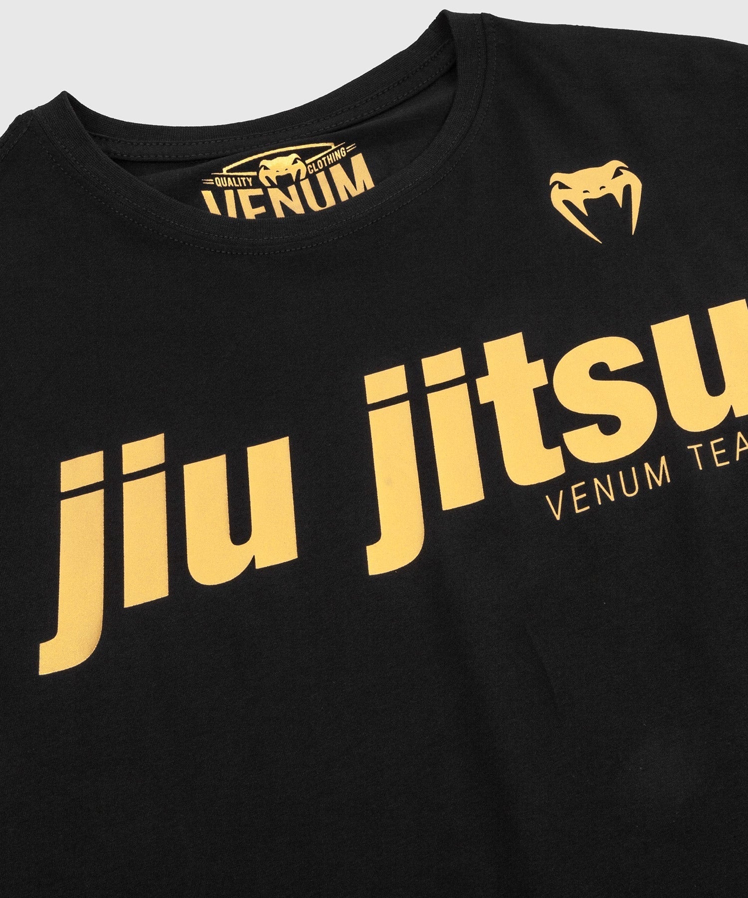Sobre, il affiche un petit logo Venum et une grande sérigraphie Jiu Jitsu imprimée sur le torse.