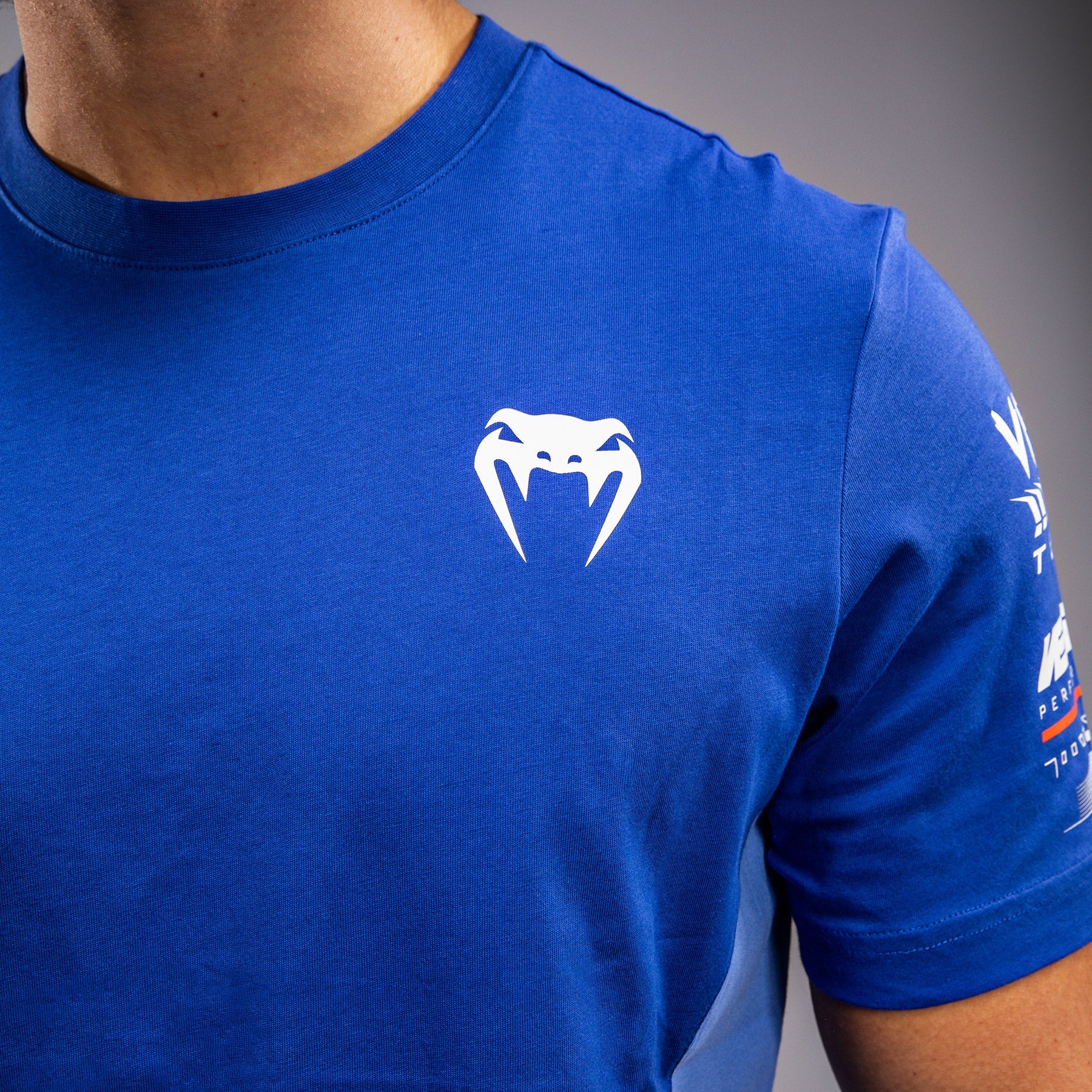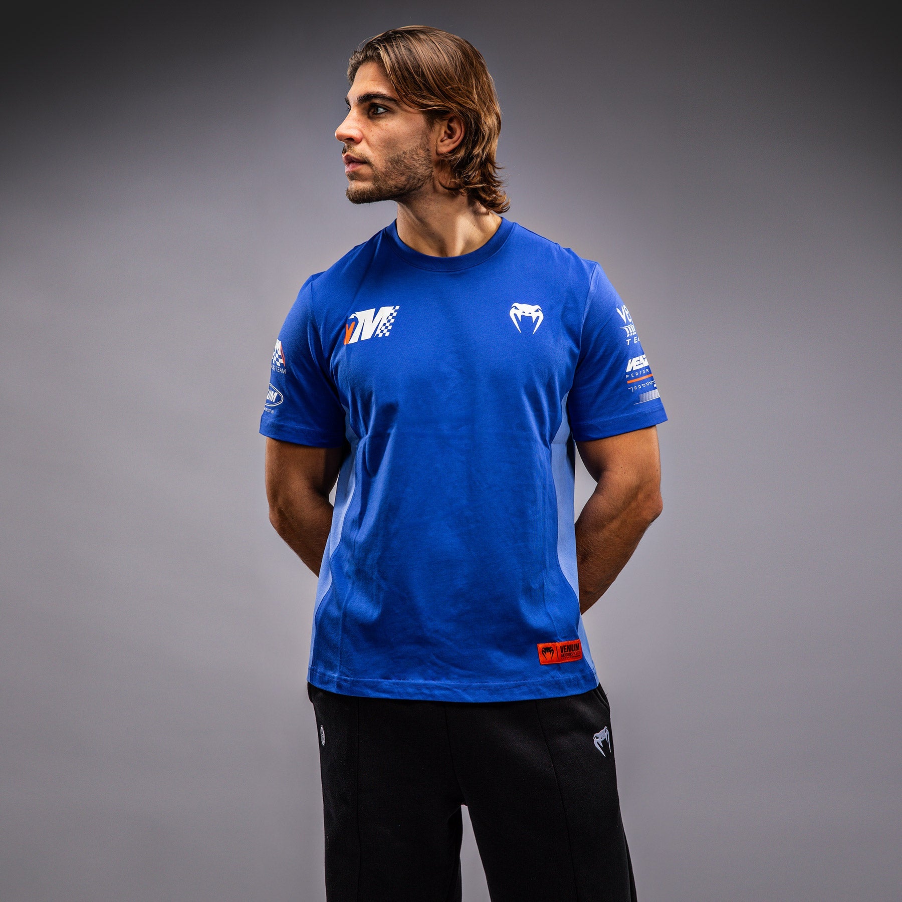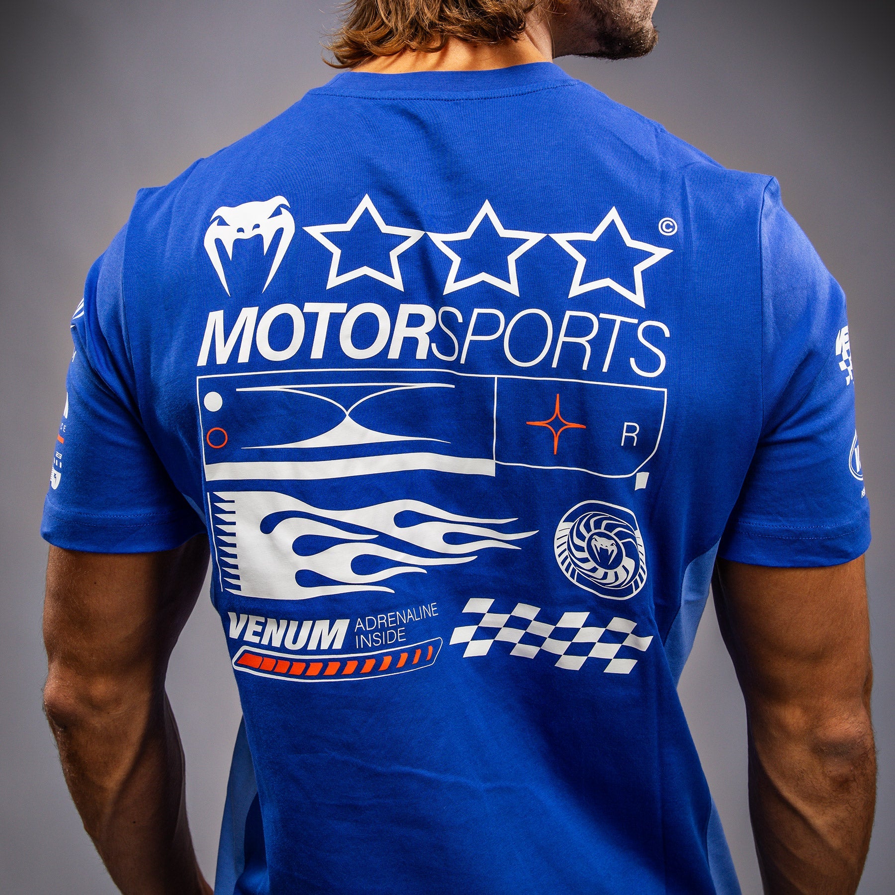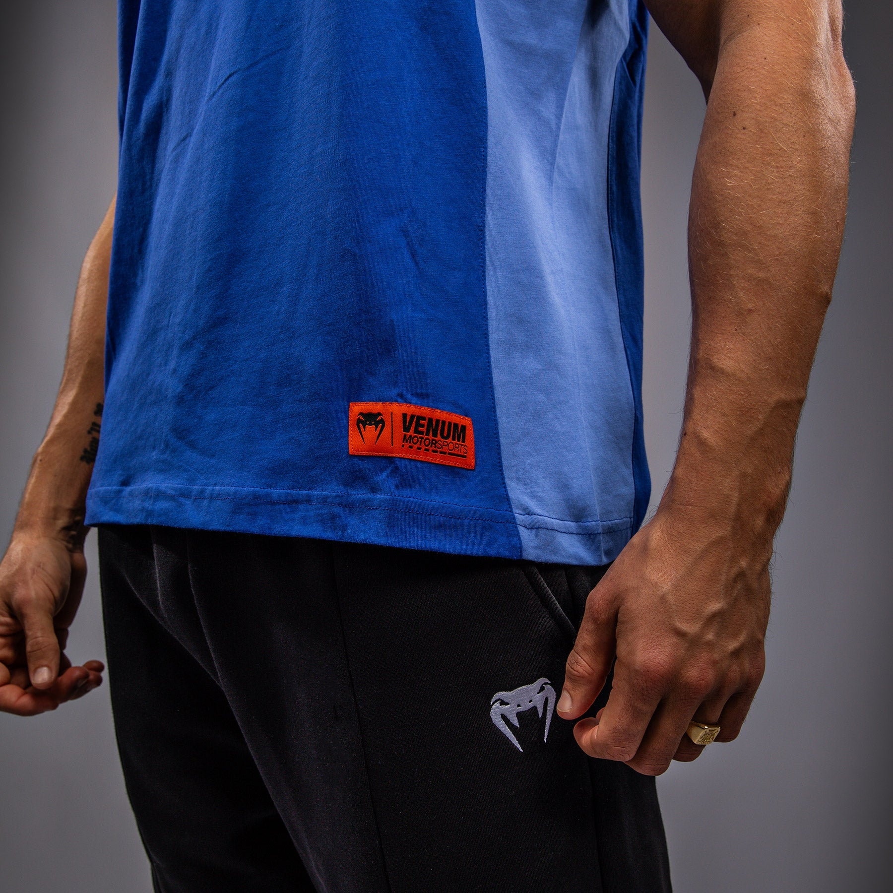 Le T-shirt Venum Motorsport en bleu royal est un tee-shirt à col rond de coupe régulière avec des panneaux bleu clair sur les côtés. Arborant des patchs imprimés et brodés en orange et blanc inspirés par Venum motorsports, ce t-shirt est prêt pour la piste !