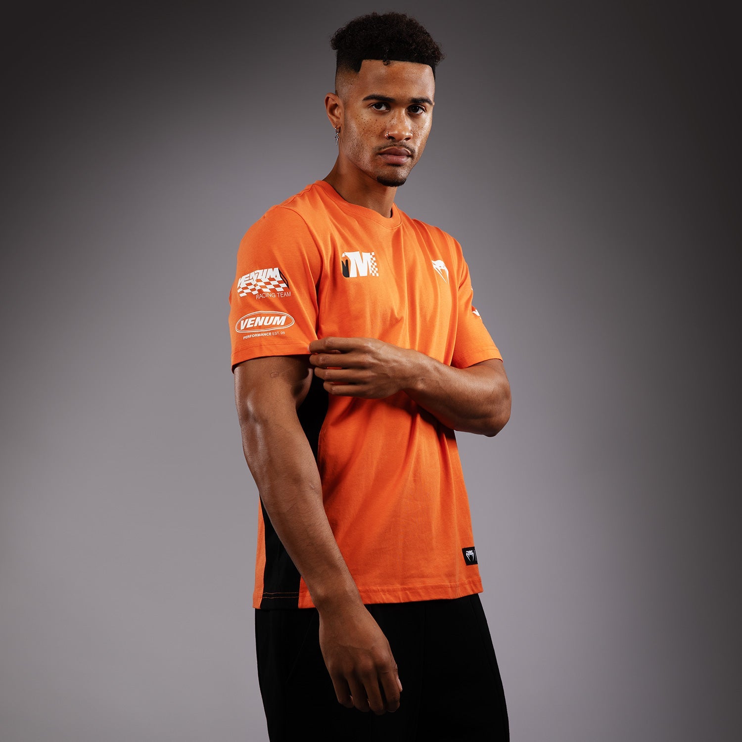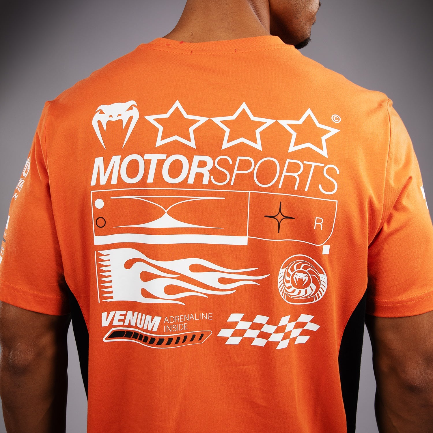 Le T-shirt Venum Motorsport en Tangerine est un tee-shirt à col rond de coupe régulière avec des panneaux noirs contrastants sur les côtés. Arborant des patchs imprimés et brodés en noir et blanc inspirés par les sports mécaniques Venum, ce t-shirt est prêt pour la piste !