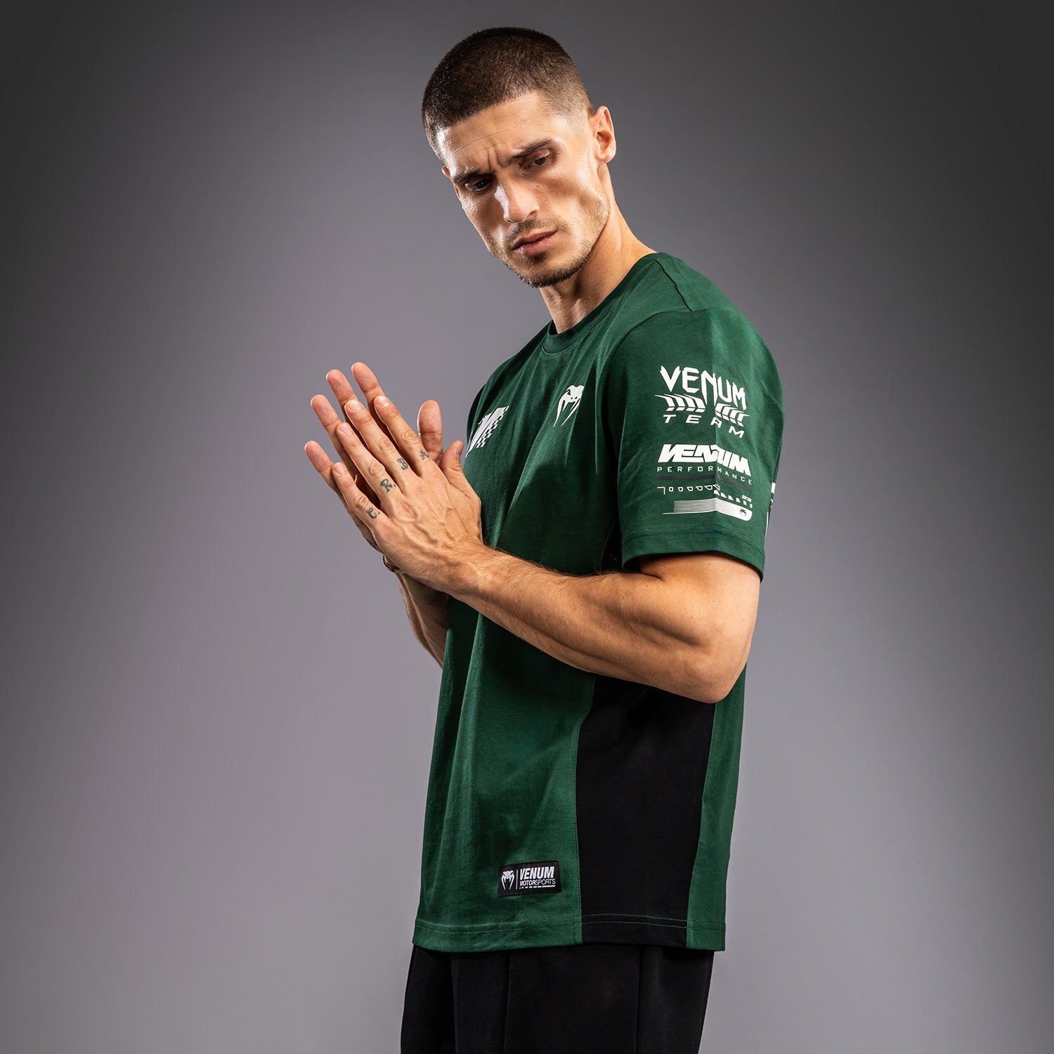 Le T-shirt Venum Motorsport en Deep Forest est un tee-shirt à col rond à coupe régulière avec des panneaux noirs contrastants sur les côtés. Arborant des patches imprimés et brodés en noir et blanc inspirés par les sports mécaniques de Venum, ce t-shirt est prêt pour la piste !