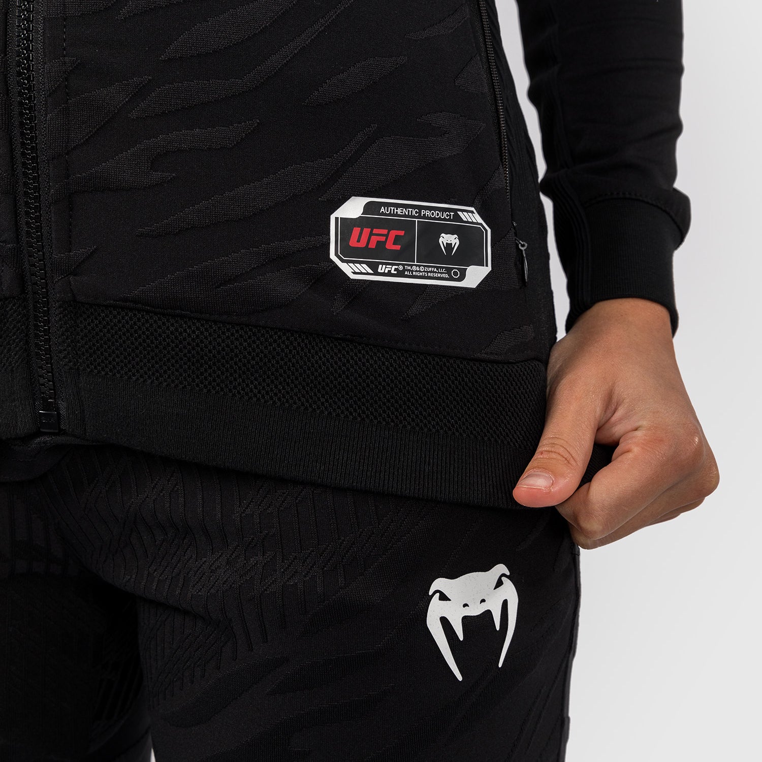 des détails réfléchis. L'imprimé animal en jacquard invite les athlètes à se connecter avec leurs instincts primaux les plus profonds pour triompher dans l'Octogone.