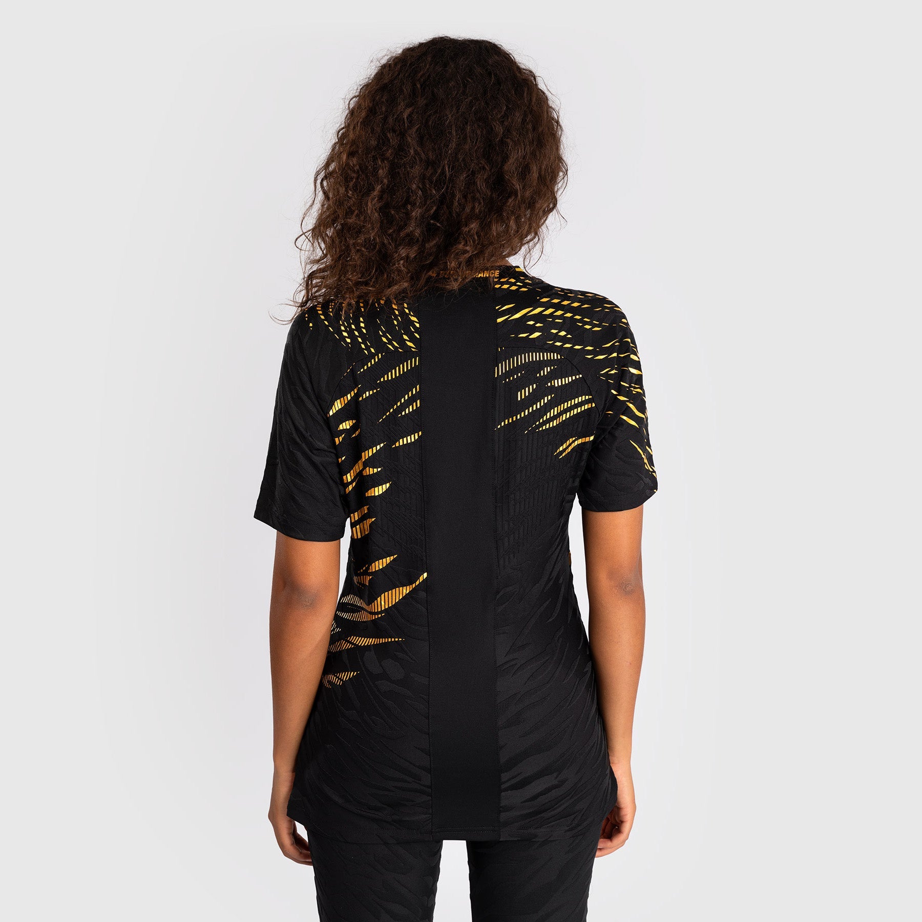 Le maillot de sortie pour femmes UFC Fusion par Venum Authentic Fight Night est une chemise de performance légère avec suffisamment d'élasticité pour bouger avec vous. Vous resterez à l'aise et au frais grâce au tissu Dry-Tech de la chemise, même lors des séances d'entraînement les plus intenses. Cette combinaison de couleurs noir/or est réservée aux champions de l'UFC.