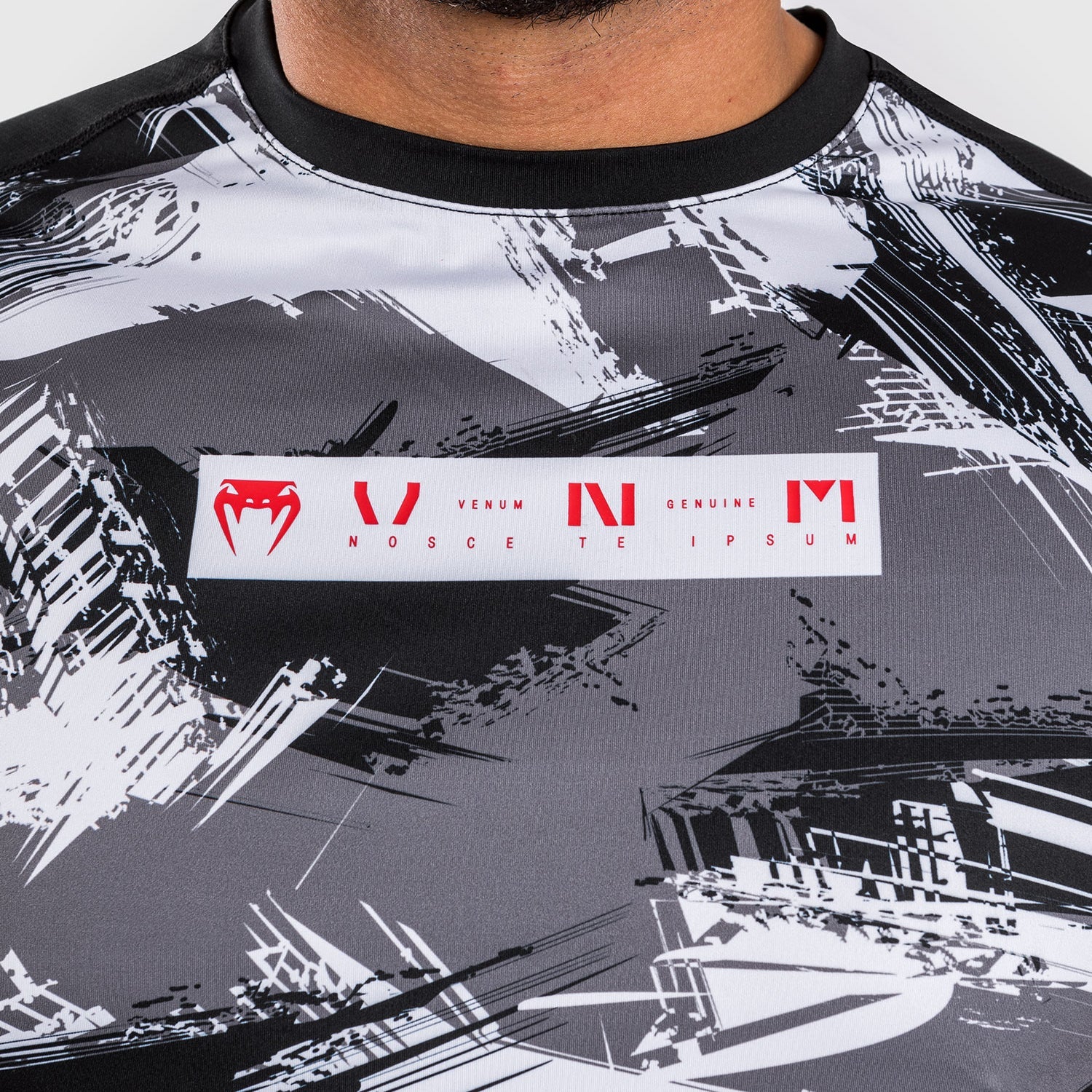 L'imprimé camouflage à coups de pinceau en bleu marine confère un style urbain à ce t-shirt. Le logo Venum argenté avec la phrase latine "Nosce te ipsum" ("Connais-toi toi-même" - Socrate) se trouve sur la poitrine.