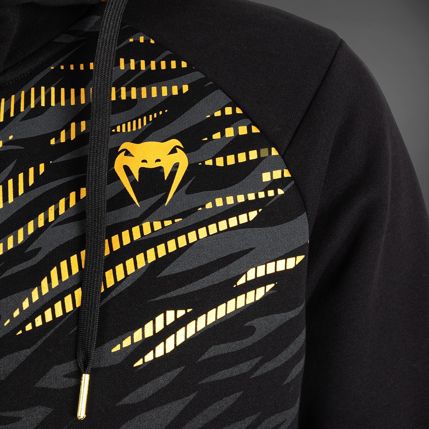 Le sweat à capuche zippé Replica pour hommes UFC Fusion par Venum dispose de poches latérales ouvertes et d'une capuche avec cordon de serrage. Les détails des logos Venum et UFC se trouvent sur la poitrine et la capuche. Cette combinaison de couleurs noir/or est réservée aux champions de l'UFC.