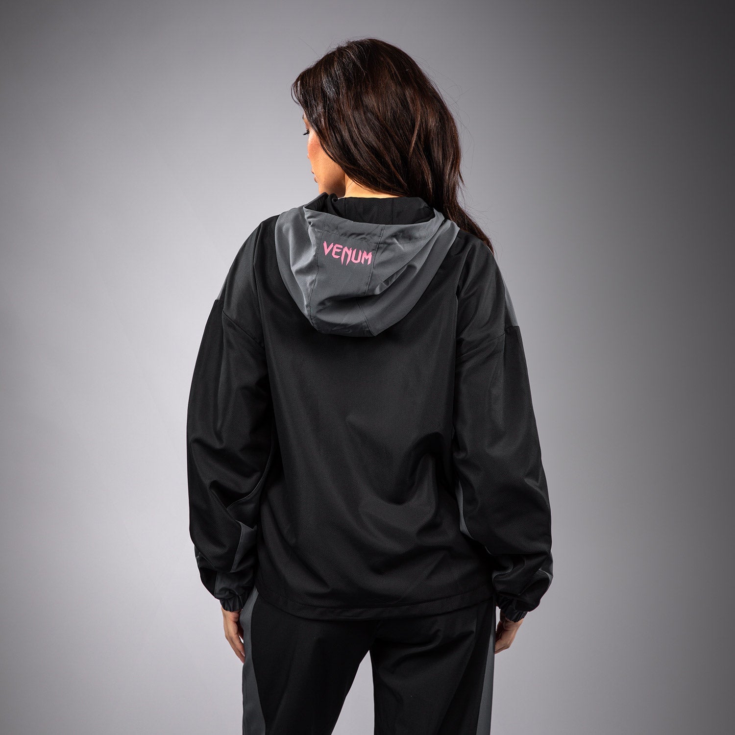La veste de survêtement pour femmes Venum Tactical XT  en Noir/Gris tempête est une veste zippée légère et polyvalente, idéale avant et après l'entraînement. La coupe ample offre un confort décontracté, tandis que l'ourlet et la capuche réglables permettent d'ajuster la coupe lors d'une course ou d'une séance d'entraînement en plein air.